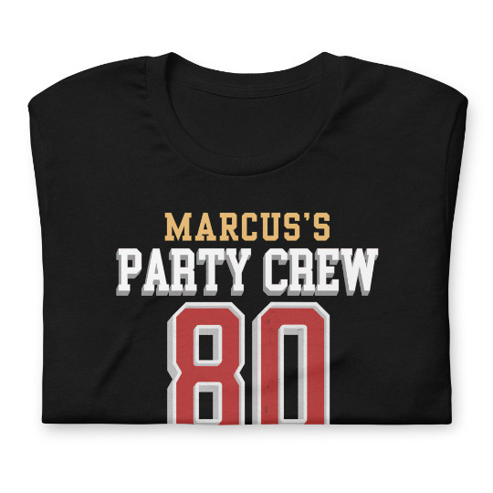 Get ready to celebrate in style with our personalized 80th t-shirt! Introducing our exclusive 80th party group tops, the perfect attire to celebrate a milestone birthday in style! Add a personal touch by customizing the shirts with the name or nickname of the birthday celebrant, making each shirt a unique keepsake.