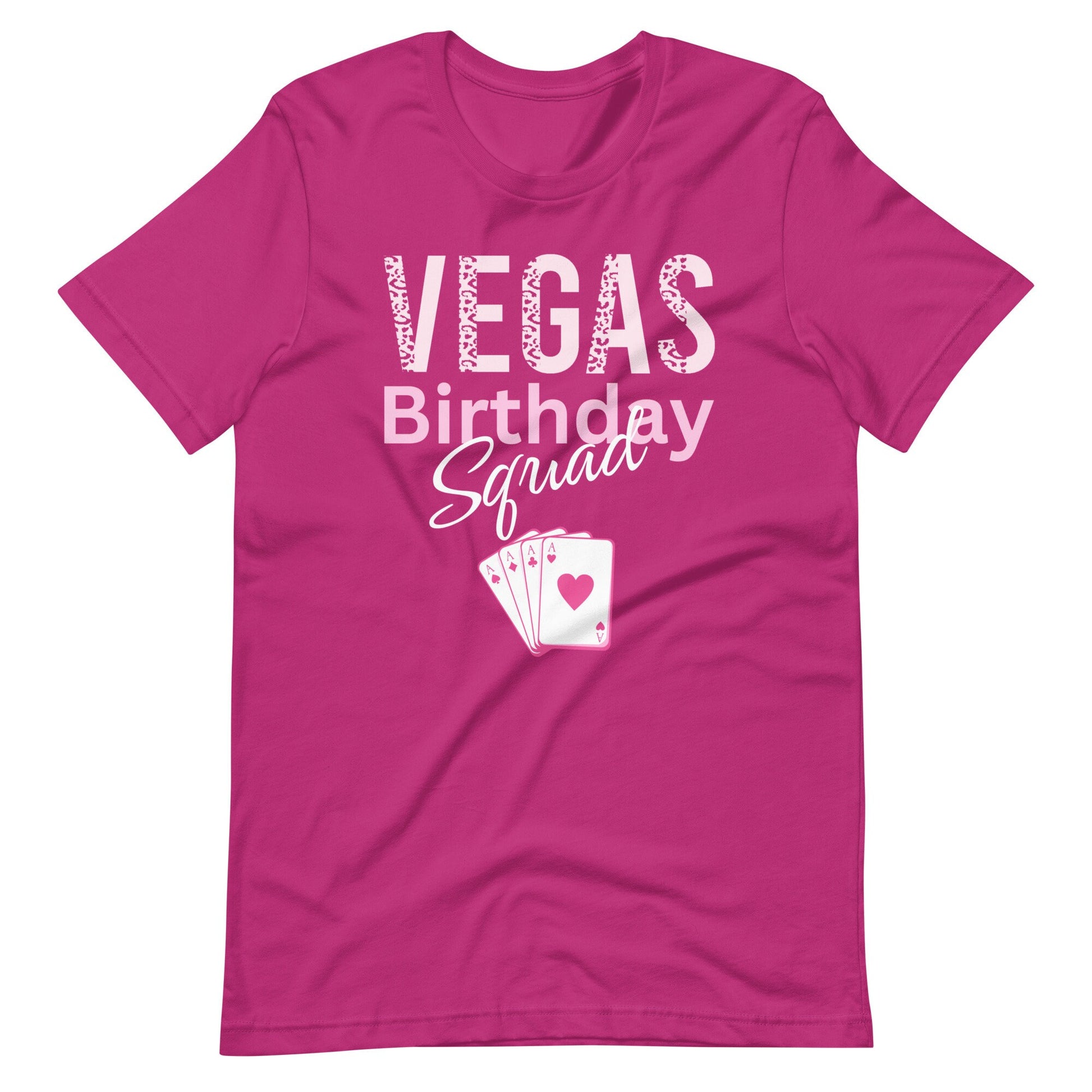 Elevate your birthday celebration to legendary heights with our Vegas squad t-shirts—a must-have ensemble for the ultimate party crew ready to conquer the Strip! Designed with a dash of glitz and glam, these matching Vegas tops showcase the iconic Vegas casino elements and boast a fun 'Birthday Squad' emblem that sets the tone for a night of unforgettable festivities. Unite the crew, embrace the vibrant energy of Sin City, and let the celebration begin!